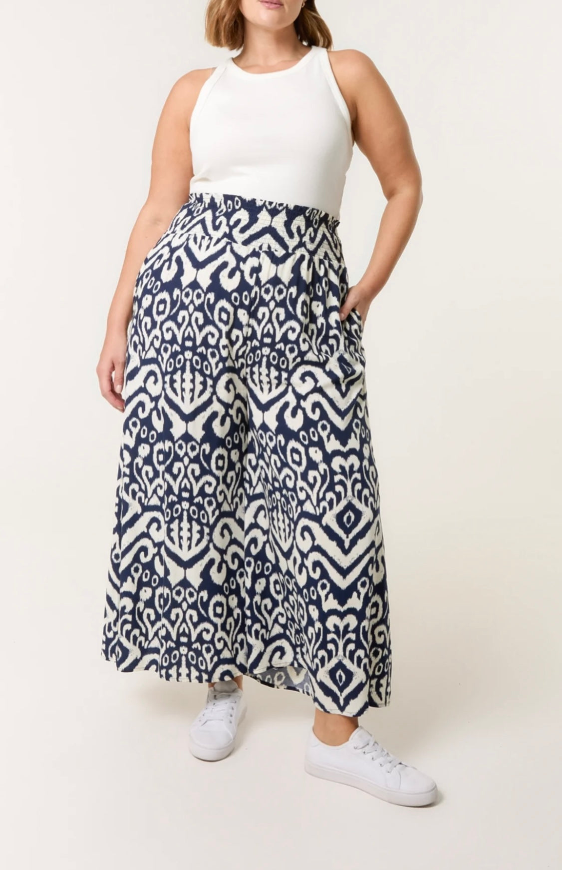 Curve Navy & Cream Wide Leg Trousers (size 18/20)